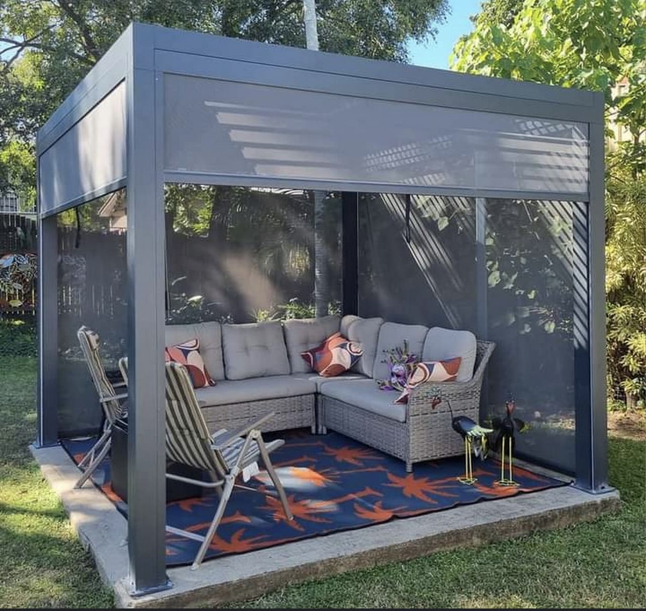Transform your outdoor space into a stylish sanctuary with a Belfort Gazebo. These sleek and durable aluminium DIY gazebo kits offer year-round comfort, whether you’re hosting a gathering or enjoying a quiet moment. With two standard sizes & colours, a louvred roof, 4 privacy blinds, and optional LED lighting (extra cost), you can customise the space to suit any occasion.