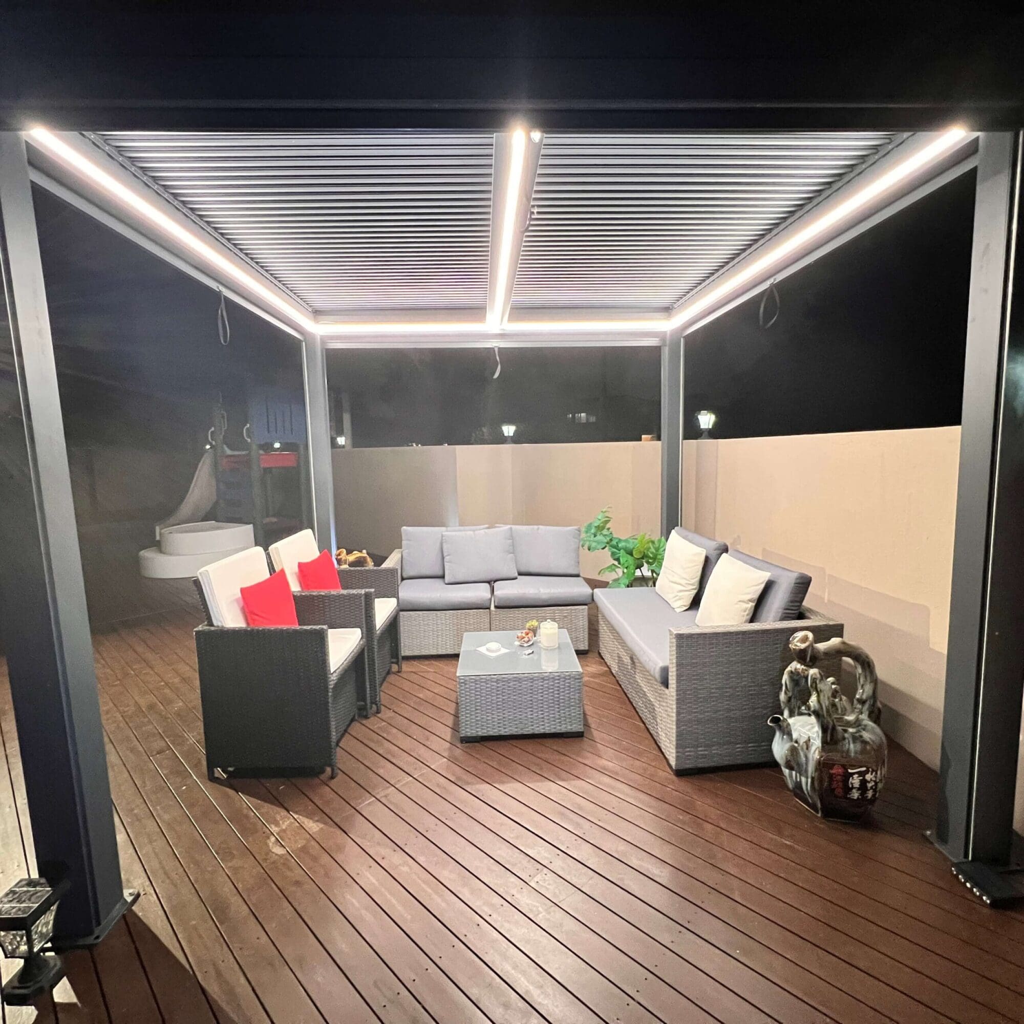 Leisure Garden warrants the louvre roof and its components against defects in materials and workmanship for a period of 1 year from date of delivery. Fading and weathering of the surface may occur naturally over time, and are not considered defects.